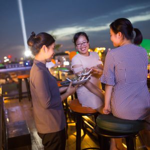 Inspired by talent chefs to create Vietnamese and fusion food to the guests, Chestnut Central Restaurant is the highlight among a wide range of options in Hanoi Old Quarter. Up to the 11th floor, the modern artistic design with spacious capacity will surprise you and exceed your dining expectation. On level 12, Central Sky Bar brings a totally different experience with 360 degree overviewing Hoan Kiem lake, Hanoi Old Quarter, Red river and the busy streets. You can sip a hand-crafted cocktail or local beer and enjoy breathtaking view of a truly Hanoi atmosphere.